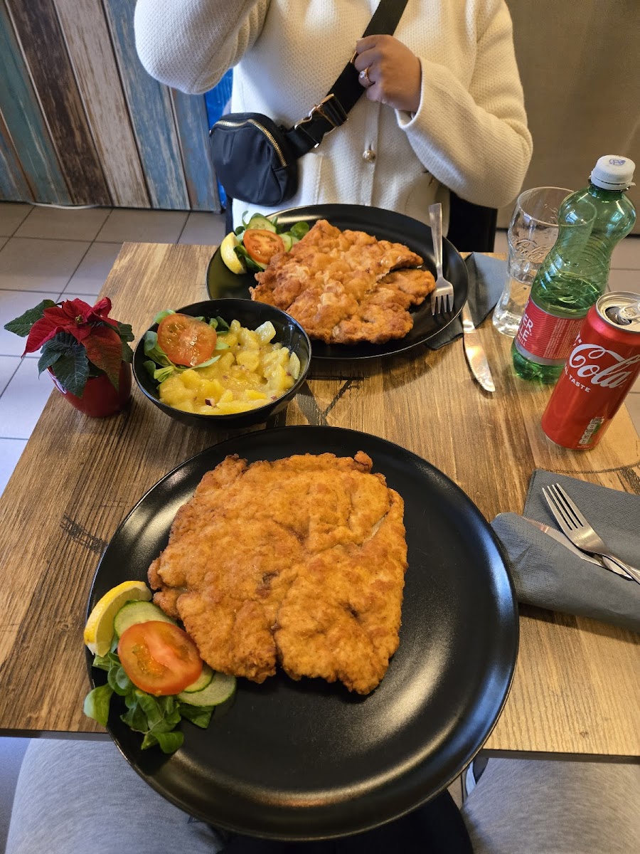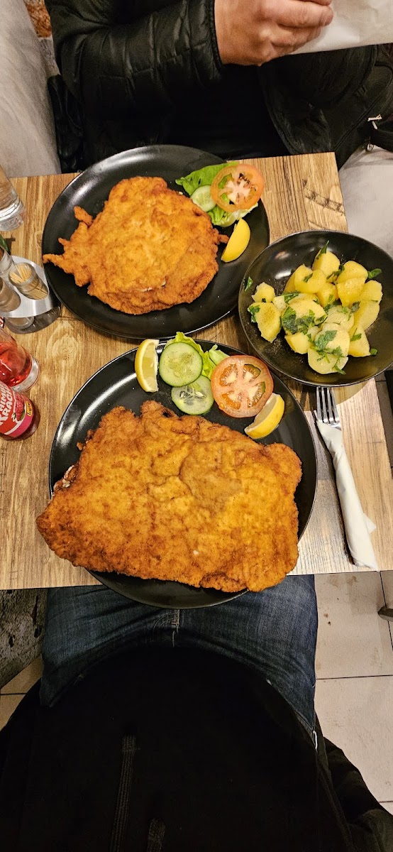It was worth to have a little walk from strict city center to eat this schnitzel! Small family place filled with kindness and joy of cooking for people. Delicious think and well fried schnitzel, very tasty potato salad and sweet treat from owner - tiramisu. Thank you for a nice conversation and very tasty dinner!